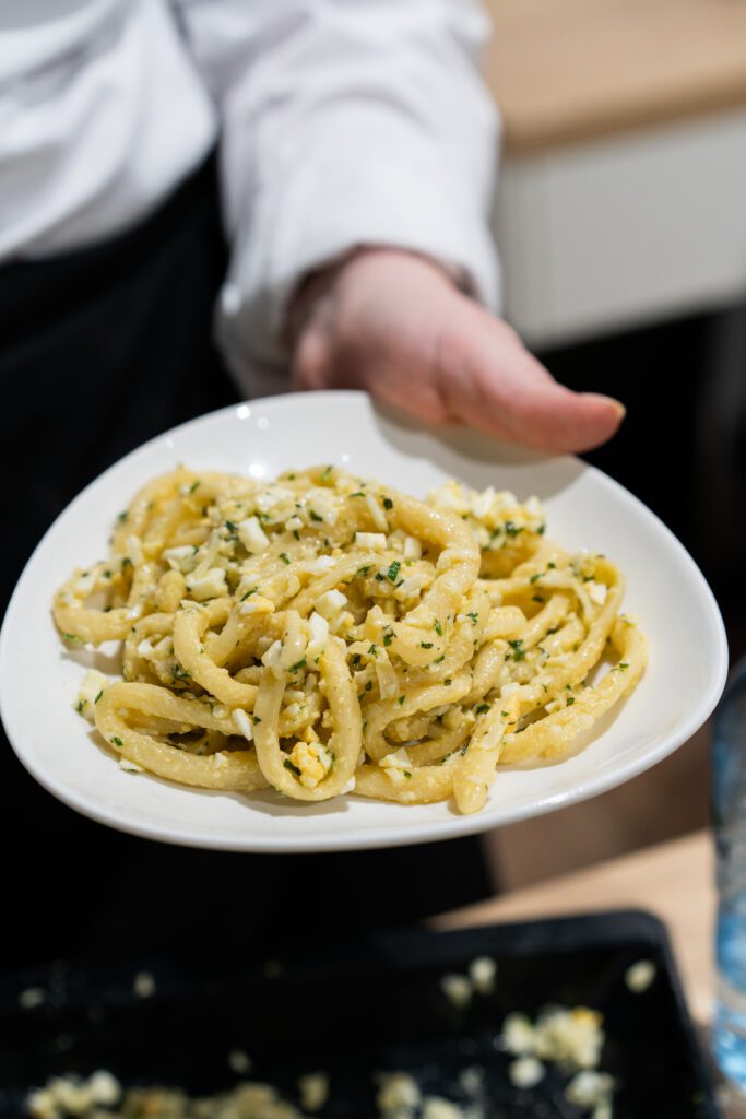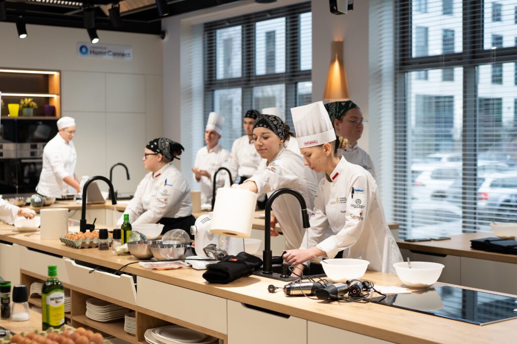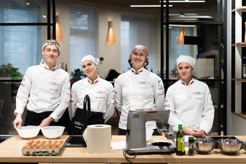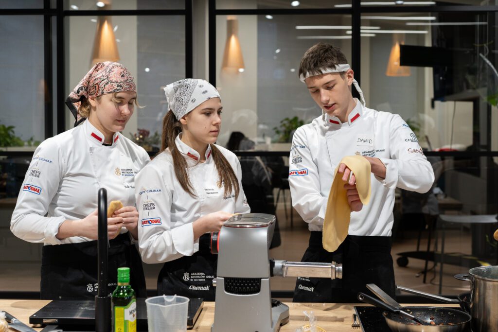 Część kulinarną poprowadziła Cristina Catese – rodowita Rzymianka, charyzmatyczna trenerka i jedna z najbardziej rozpoznawalnych postaci świata kuchni włoskiej w Polsce. Studenci pracowali z ręcznie wyrabianą pastą, ucząc się nie tylko techniki, ale także rytmu pracy, uważności i filozofii włoskiego gotowania, w którym kluczową rolę odgrywają relacje, wspólny stół i radość tworzenia.